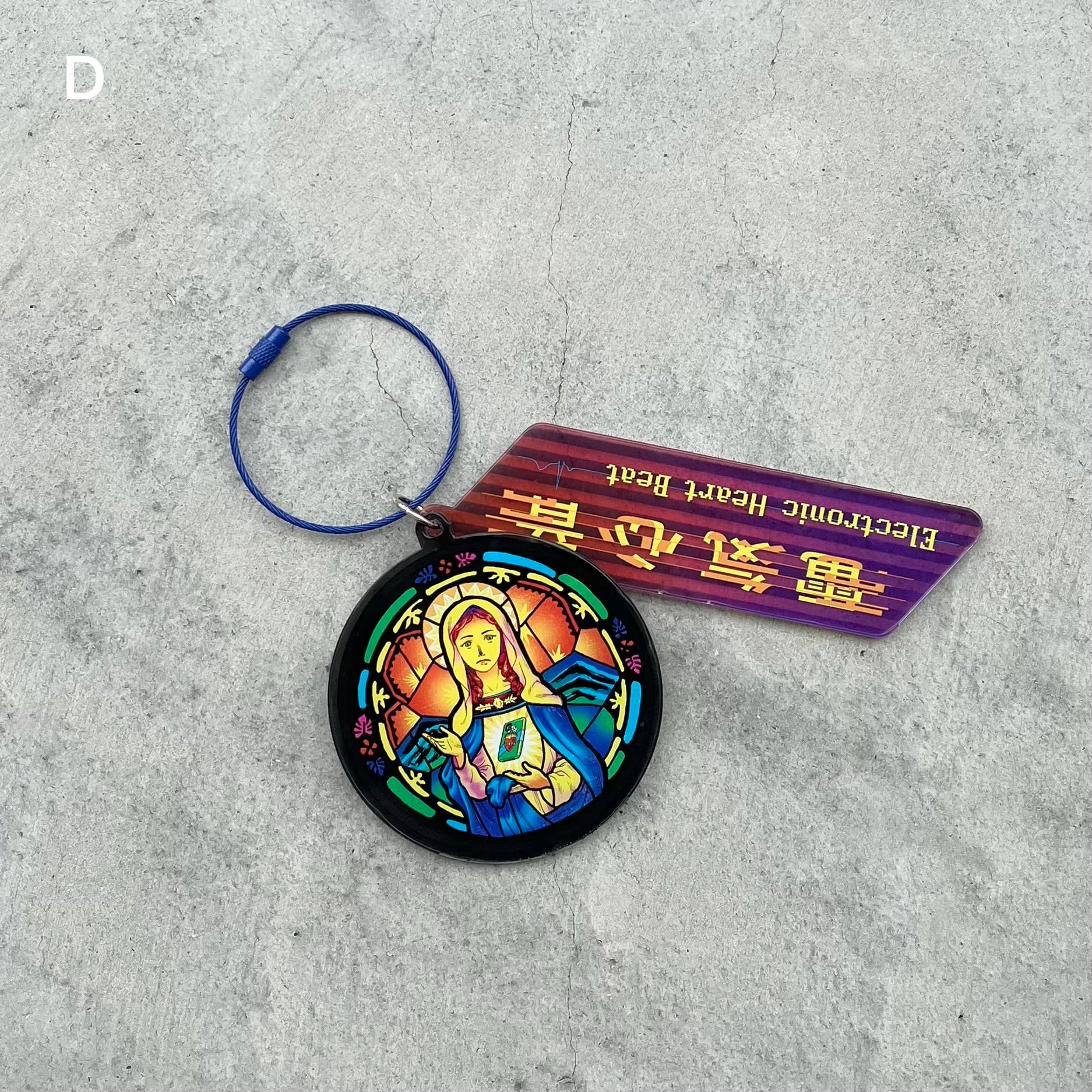 本展でも展示されている作品「マリア」を大きめのサイズ感と両面プリントで再現したD。(こちらは2連タイプです。)