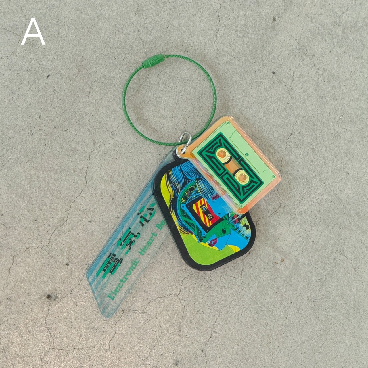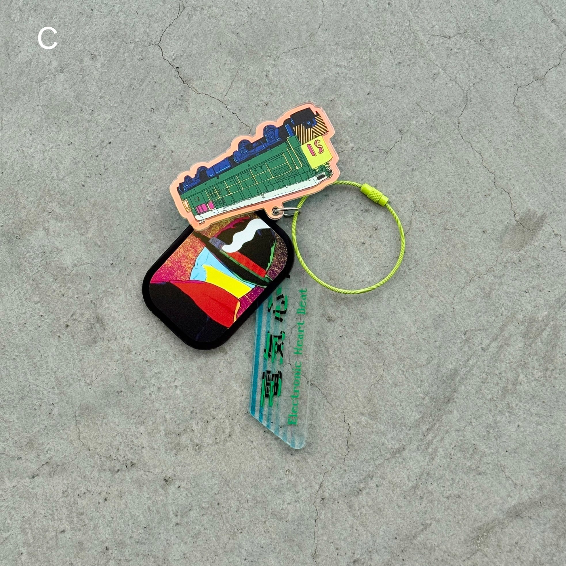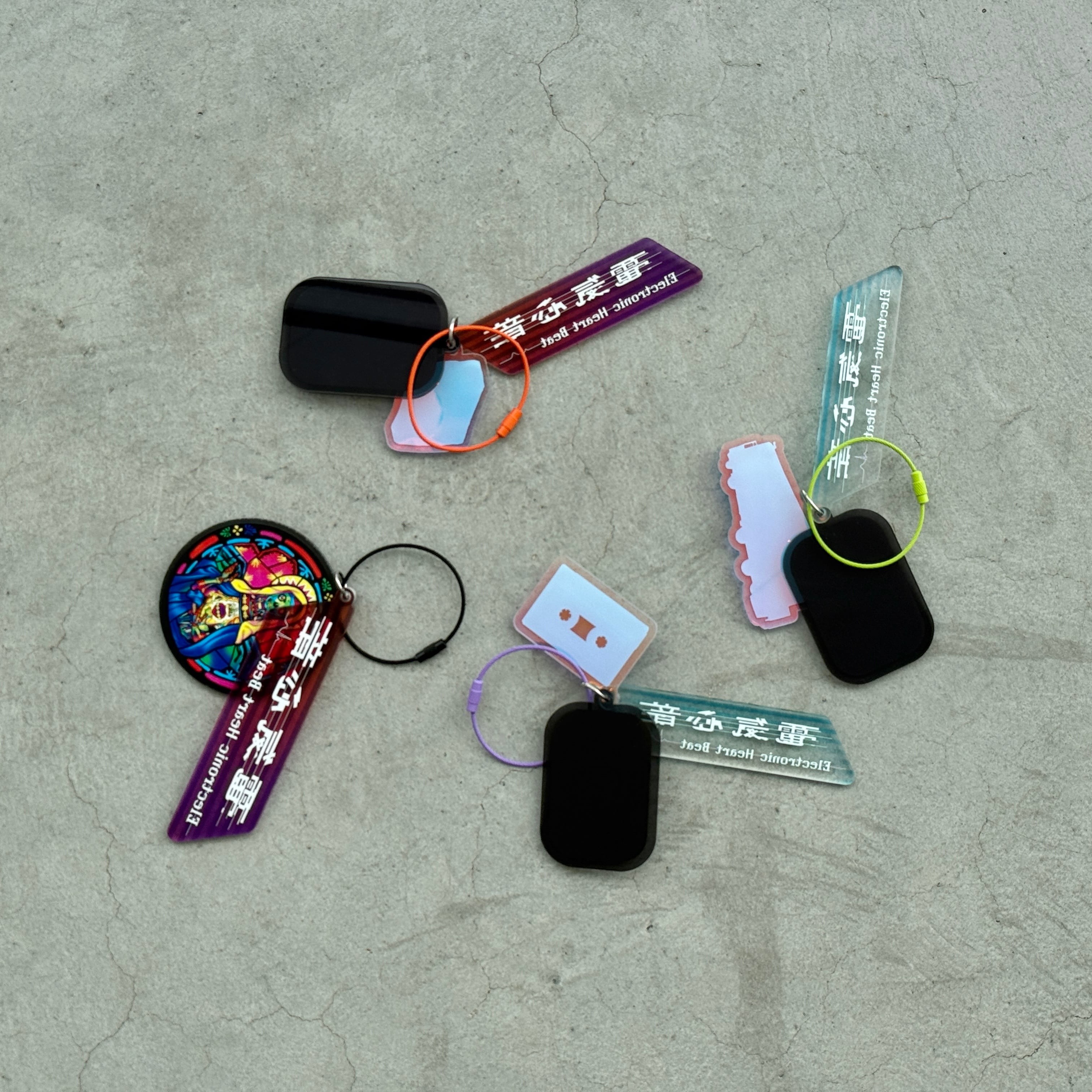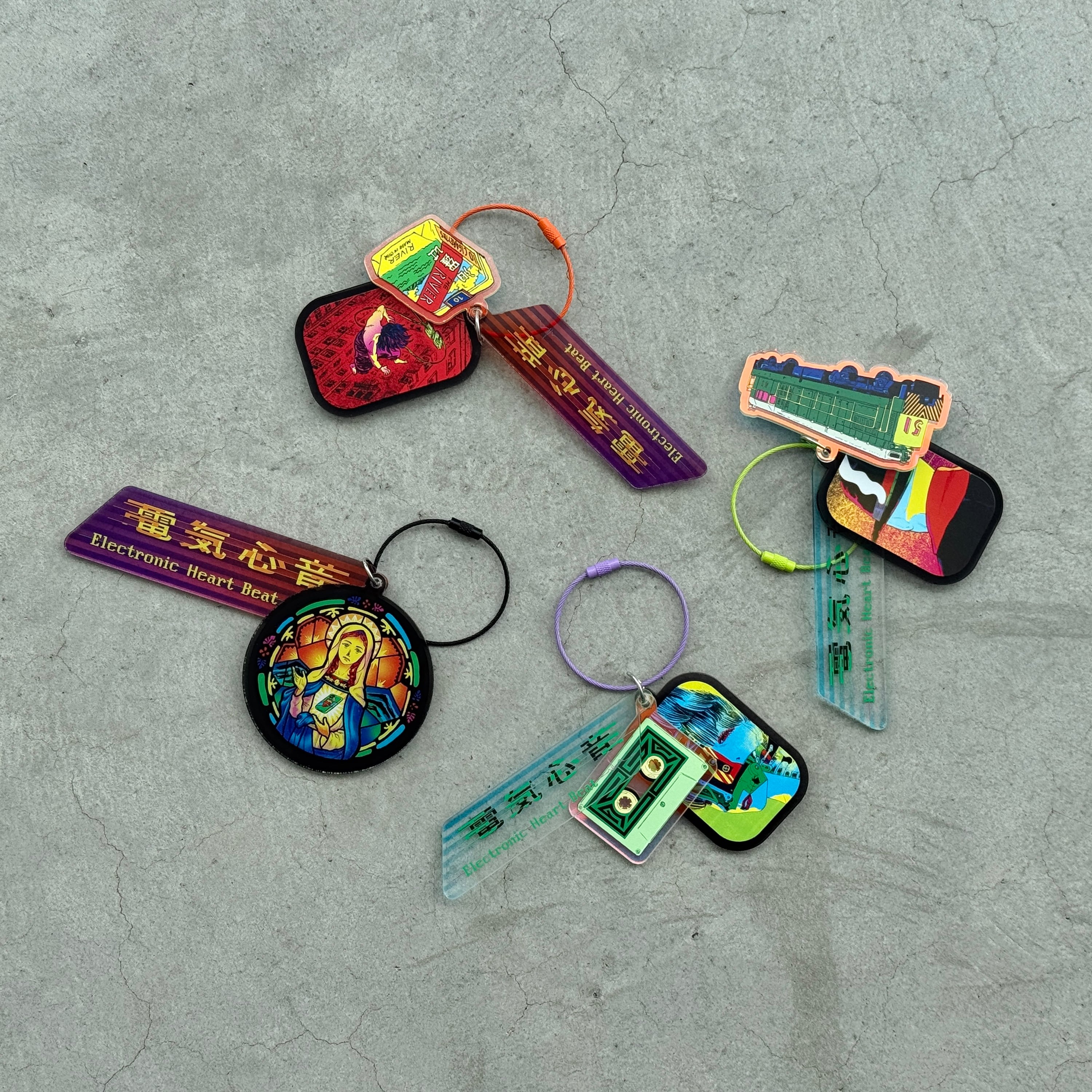 展覧会「江康泉 電気心音」開催を記念し製作したオリジナルアクリルキーホルダーです。